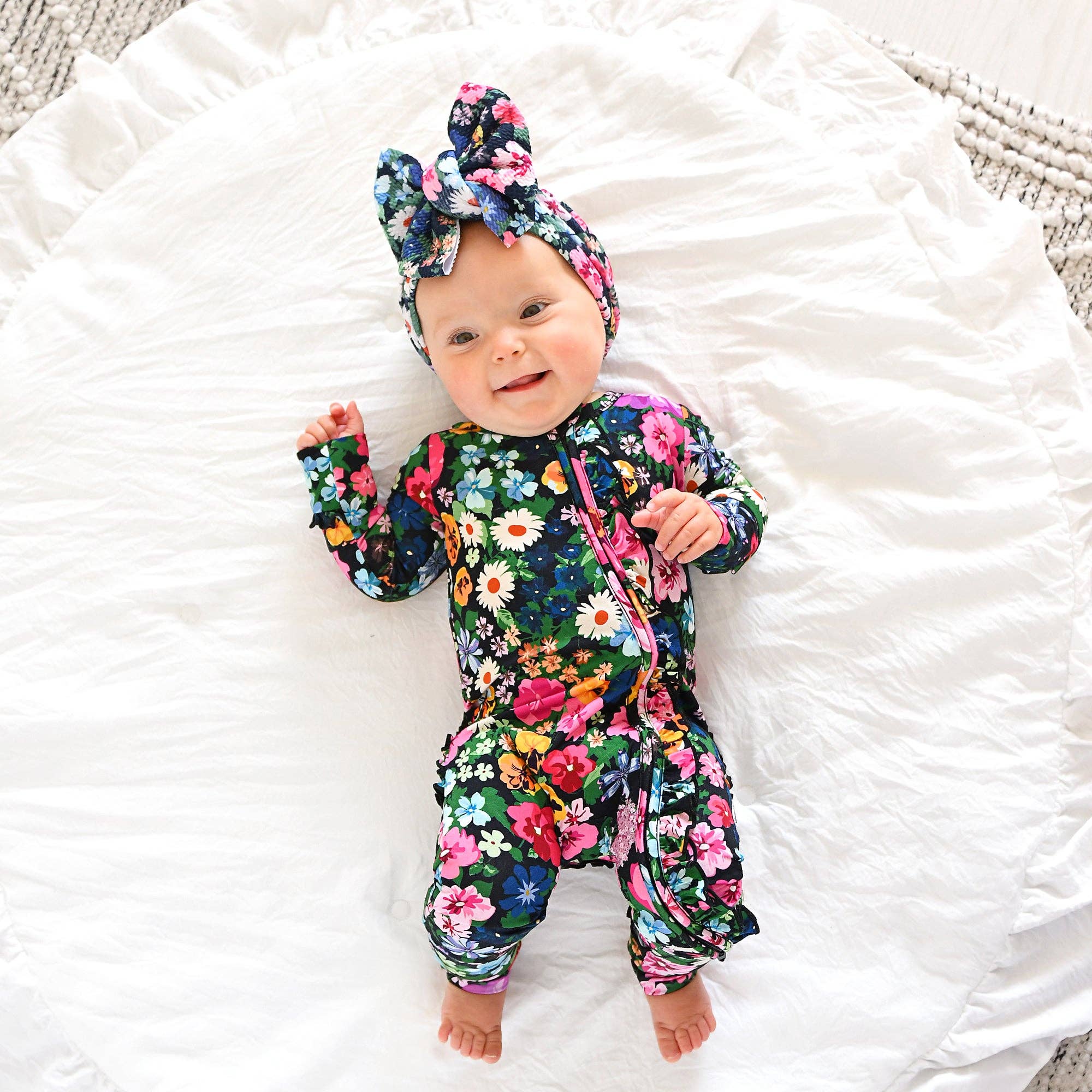 Cassandra RUFFLE ZIP Bamboo One Piece Floral Baby Clothing